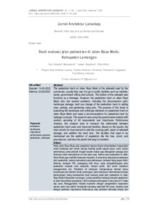 The pedestrian track on Jalan Raya Modo is the sidewalk used by the community, usually they use it to go to public facilities such as markets, banks, government offices and schools. The bottom of the sidewalk also functions as a drainage. However, the pedestrian track on Jalan Raya Modo also has several problems, including the disconnection path, hardscape damage, land use change of the pedestrian track to selling area, parking, and gardening using pots. The purpose of this study is evaluating the hardscape and softscape elements on pedestrian track on Jalan Raya Modo and make a recommendation for pedestrian track by redesign concepts. The research was using the questionnaire method with random sampling of 90 respondents and Importance Performance Analysis, this analysis aims to measure the relationship between pedestrian track users and improved facilities. Based on the results, the main priority for improvement is add the crossing path, repair of sidewalk damage, and addition the trash bins. The facilities that need to be maintained are the addition of vegetation like the tree, shrub, and groundcover, and also the plants that easy to maintain.